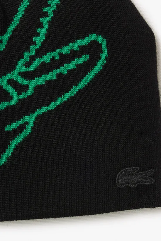 Home Olivia Rodrigo Hats Lacoste Large Croc Logo Beanie Black